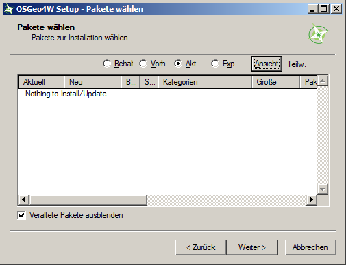 Die Liste der zu aktualisierenden Pakete einer OSGeo4W-Installation.