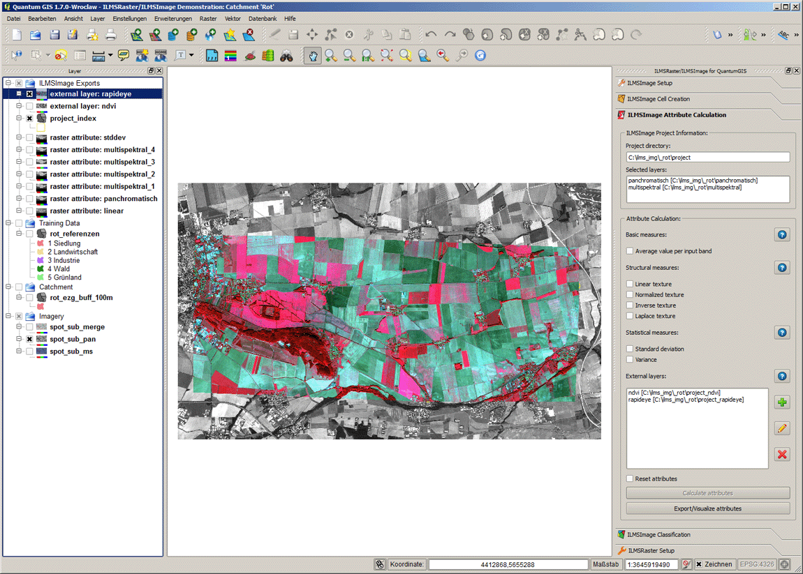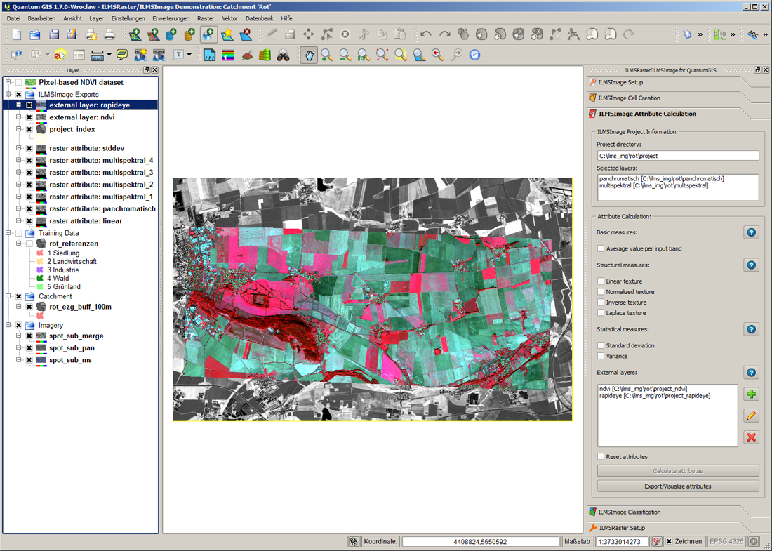 Skalierter RapidEye-Datensatz nach Import als externe Datenebene