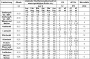 Além disso, valores albedo específicos dos seres vivos estão aqui incluídos, os quais são utilizados para o cálculo do saldo da radiação. O índice de área foliar e a altura da vegetação efetiva são representados como pontos distintos (d1...d4) do ano. Os pontos representam o início do período de vegetação (d1), a conclusão do desenvolvimento máximo ou da maturação (d2), o período de maturação até o ponto d3 e, em seguida, a redução até o final do período de vegetação (d4). Os pontos individuais são representados por dia juliano (d1 = 110, d 2 = 150, d3 = 250, d4 = 280) para áreas com cerca de 400m de altura. Para outras alturas (z) estes pontos são aproximados de acordo com a seguinte relação empírica: